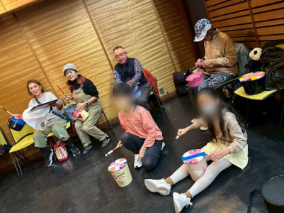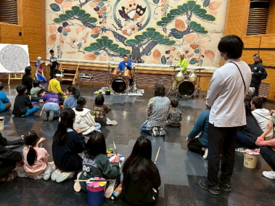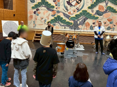 子どもたちによるドラム体験も行われ、パワフルで独創的な演奏が披露されました。